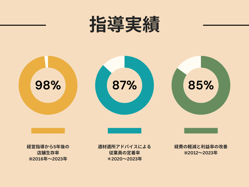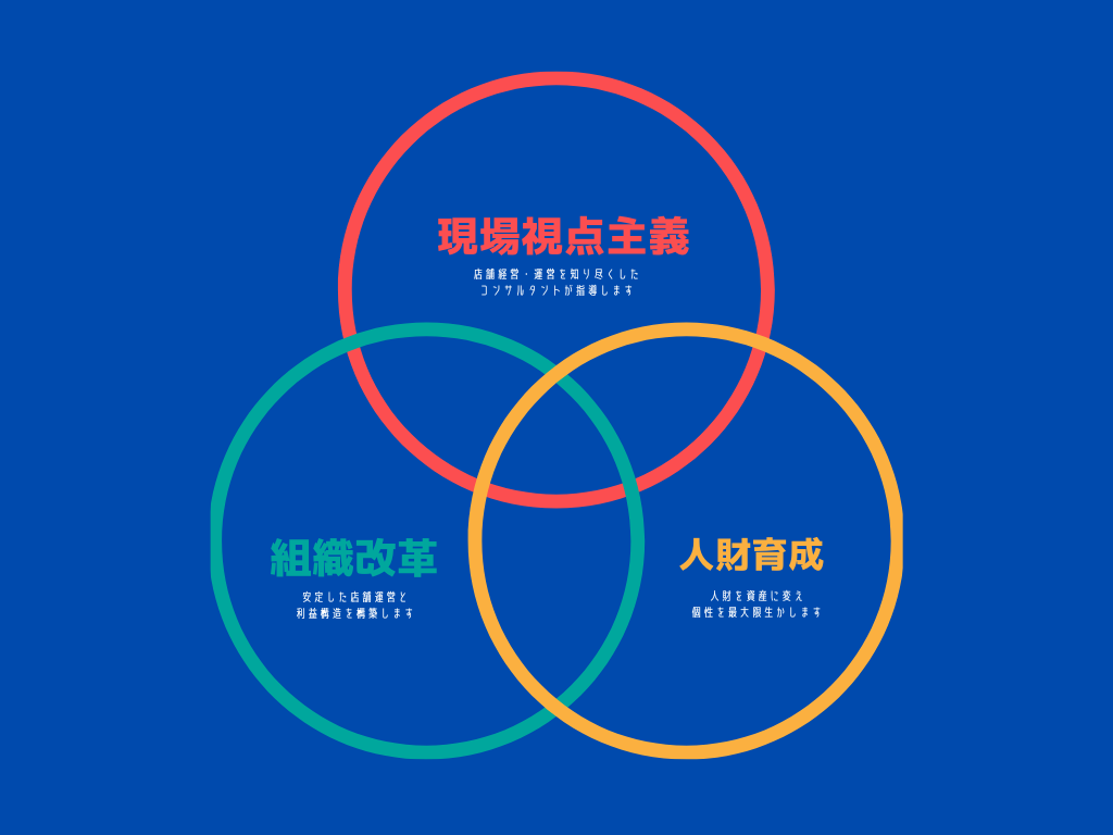 当社のコンサルティングは、経験豊富な専門家がお客様のビジネスに焦点を当て、独自の課題に対処するための柔軟で効果的なソリューションを提供します。私たちと共に、あなたの店舗を安定させ成功へ導きます。